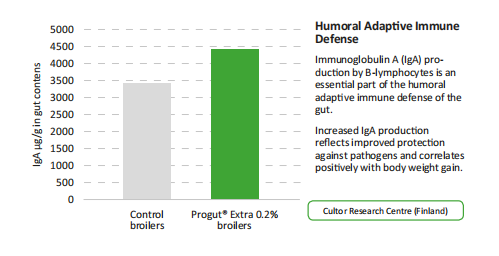 Progut® Extra increases the deposition of immunoglobulins in colostrum or in eggs, enhancing the passive immunity of the offspring.