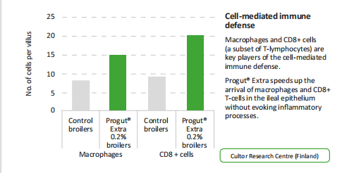 Progut® Extra works as a careful self-defence coach to the immune system. It speeds up the development of the adaptive immune system. This allows the natural defences to be prepared to take action when needed, but only when needed. Nutrients are speared to be used for growth.